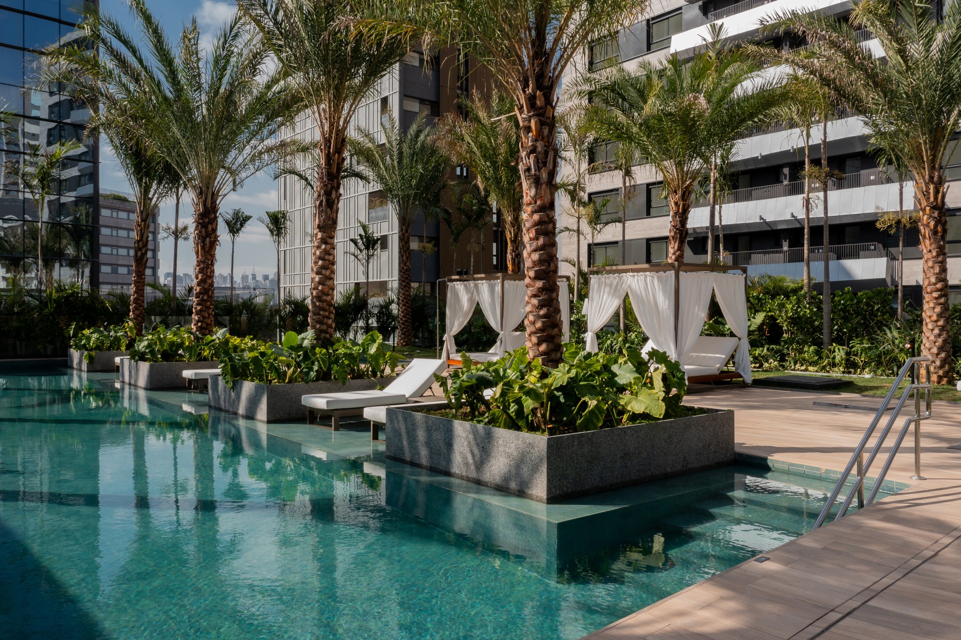 Em seu primeiro empreendimento entregue em São Paulo, a Marquise Incorporações contou com o talento de Benedito Abbud, um dos principais nomes do paisagismo brasileiro e que soube como ninguém conectar o empreendimento ao verde do entorno.