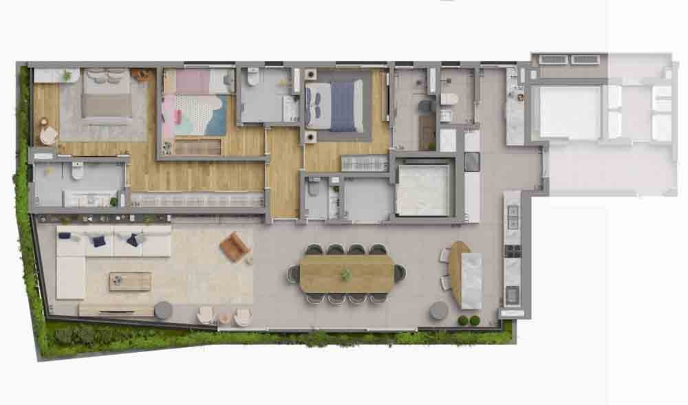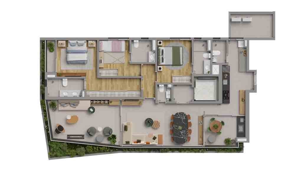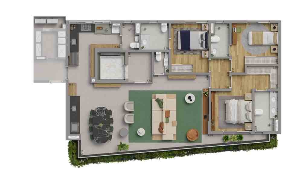 3 suítes de 141 a 160m²