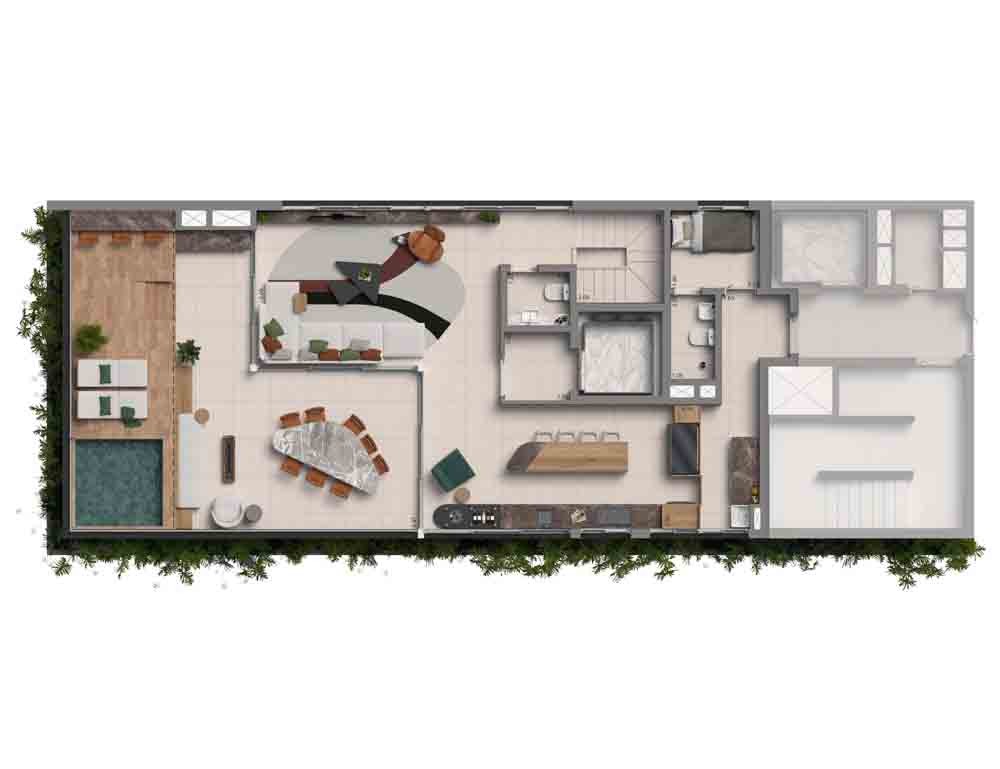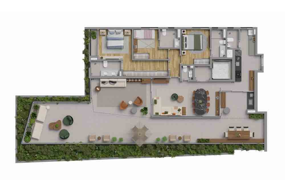 - UNIDADES RESIDENCE 22º ao 23º pav.: 01 unid. duplex 3 suítes | 272,10 m² (5 vagas e depósito privativo).